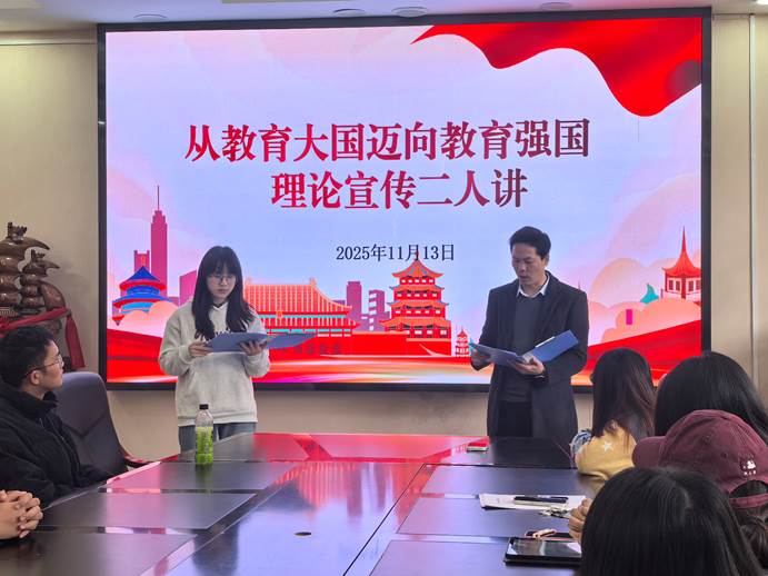 此次理论宣传二人讲活动,是学院强化青年思想政治教育的重要举措,有效推动了党的创新理论与学科实践深度融合,为引导青年学子在教育强国建设中贡献青春力量奠定了坚实基础。
